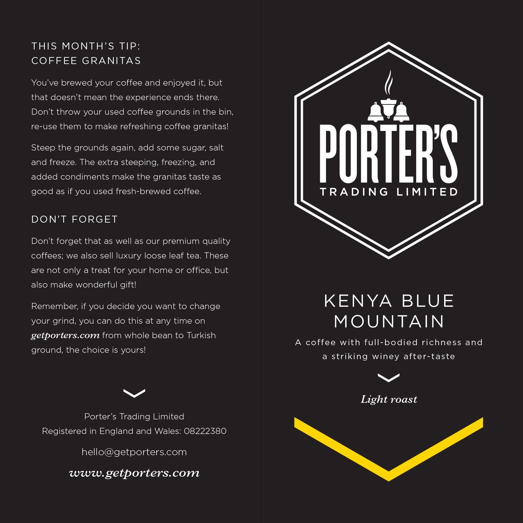 Porter's Trading Limited was a new exciting startup in the subscription e-commerce space. Delivering a different flame roasted coffee each month.