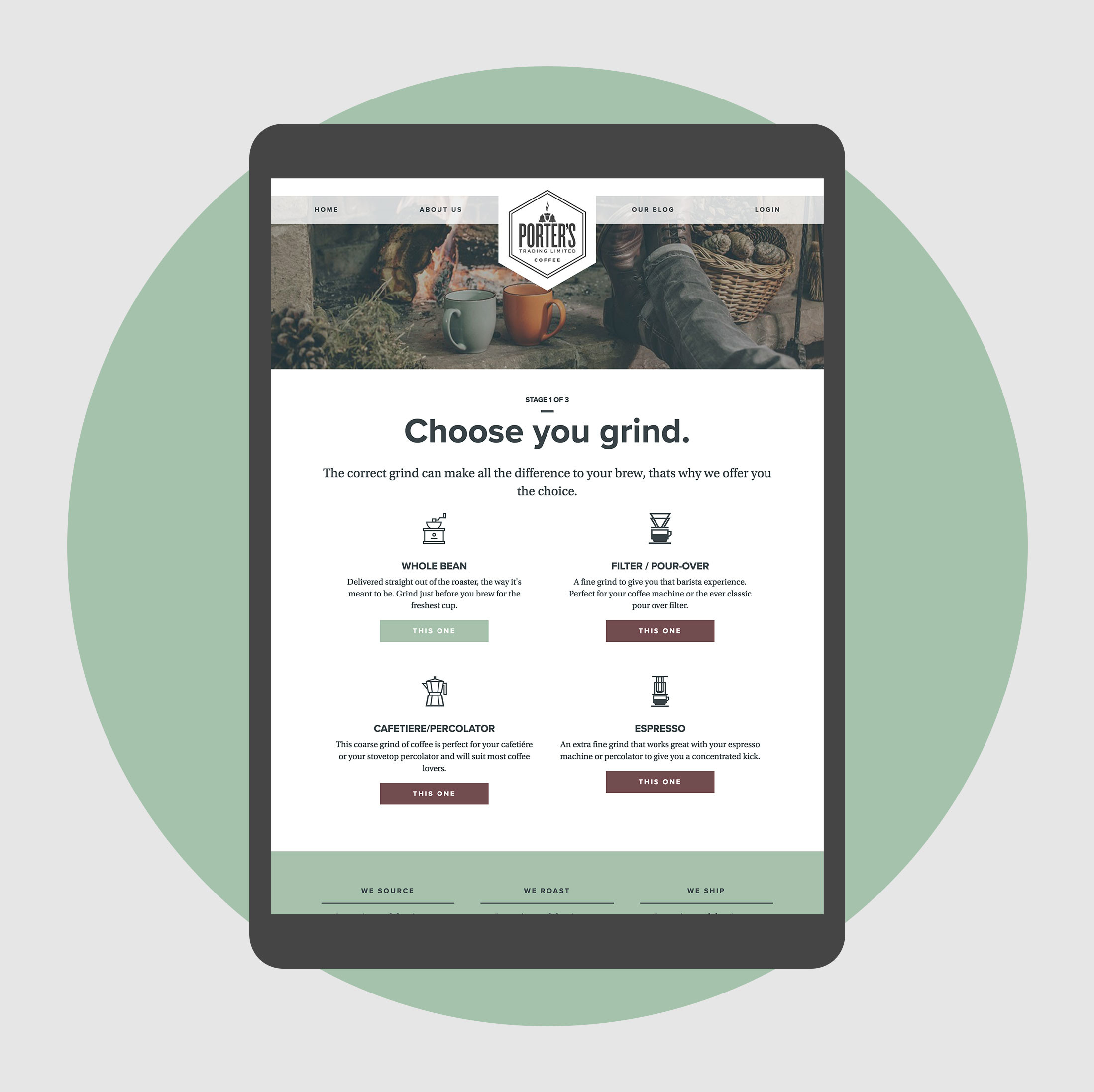 I developed a robust and easy to use order system to allow customers to sign up, pick their bag size, and grind type.